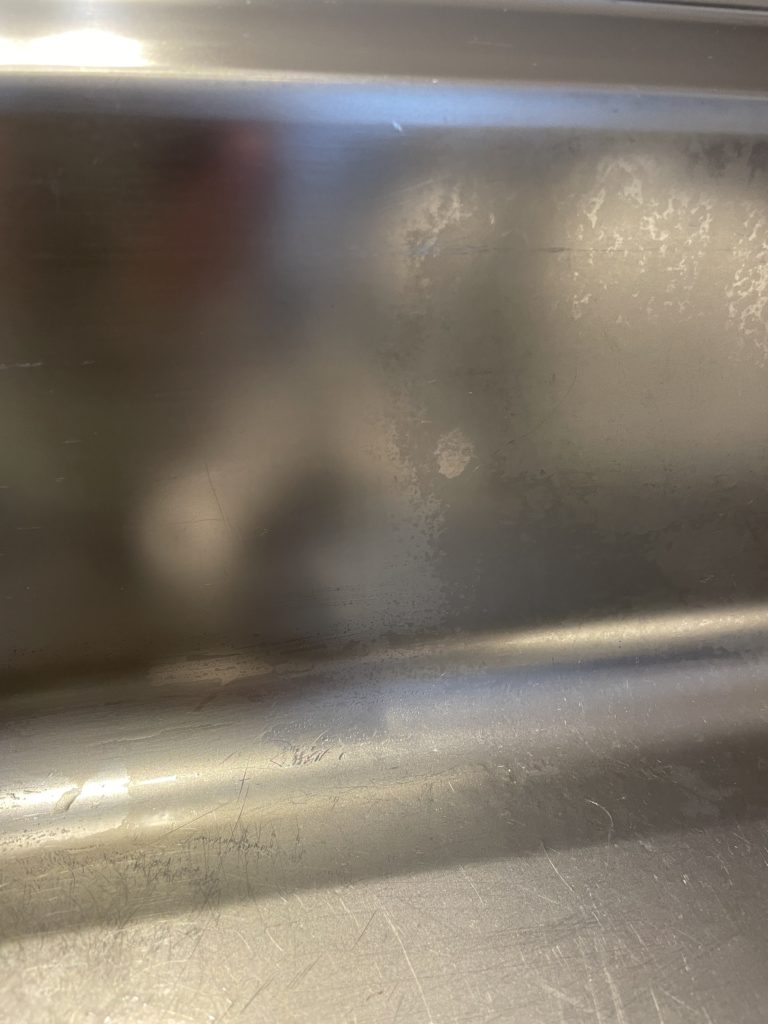 ☟シンクの水垢、左側はお掃除後、右側はお掃除前です。ちょっとわかりにくいかな😅