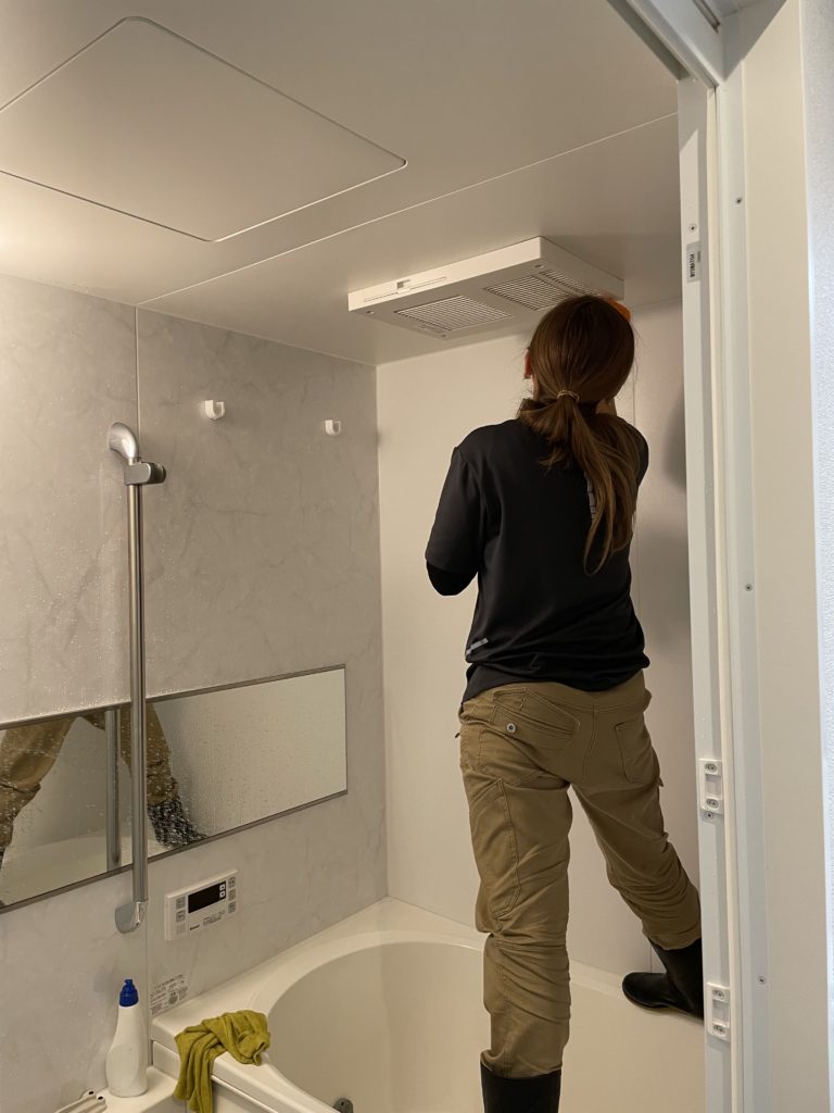 写真はライツ女性スタッフが頑張ってお風呂掃除しているところ^_^ このスタッフ、男並に重い荷物を運んだりするんですよー、でもお掃除になると女性らしくきめ細かくとても丁寧❗️いつも元気に頑張ってくれています😊