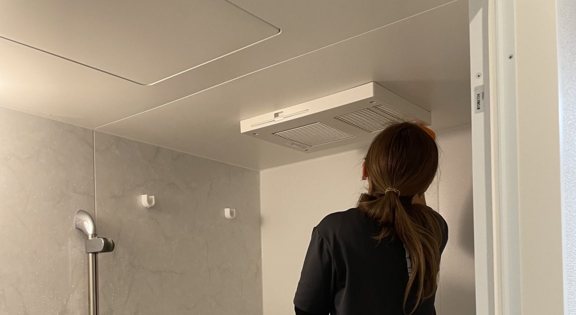 写真はライツ女性スタッフが頑張ってお風呂掃除しているところ^_^ このスタッフ、男並に重い荷物を運んだりするんですよー、でもお掃除になると女性らしくきめ細かくとても丁寧❗️いつも元気に頑張ってくれています😊