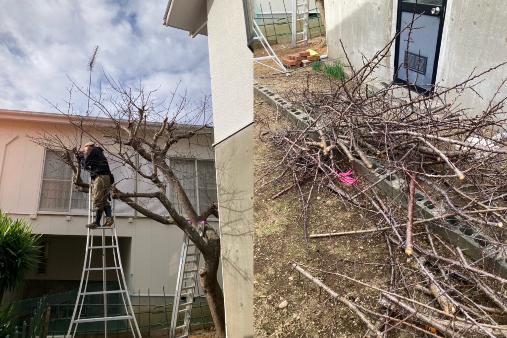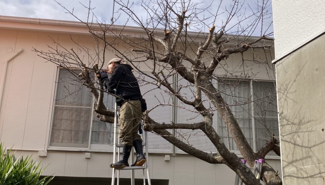 昨日は鴨川で庭木のお手入れ🌲 隣の敷地に伸びてしまった桜の木の枝を伐採。周りの壁や屋根にあたらないよう慎重に慎重に😕桜がダメにならないように切り口には薬を塗ってやります。春にはまたかわいい花をつけてくれるでしょう🌸
