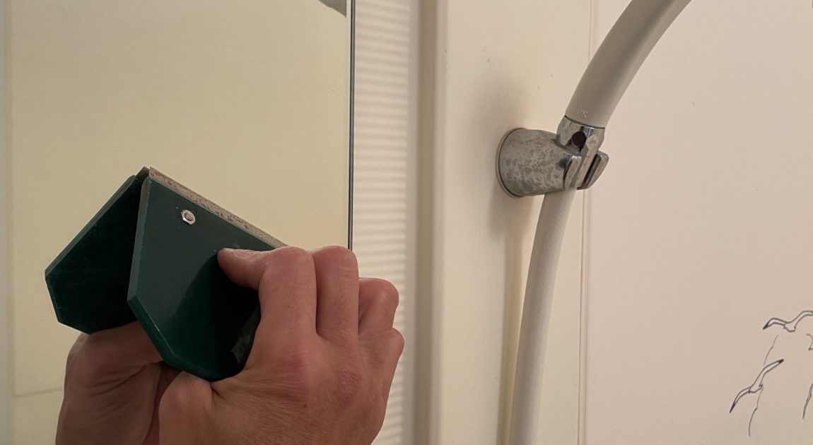 さぁ、この鏡ウロコを落とすぞー💪と写真を撮って作業開始。キレイになったんですが、またいつものようにアフター写真を撮り忘れてしまいました😅 スンマセン😅