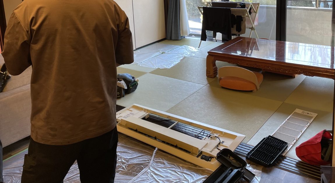 昨日から現地入りさせていただき、5日間かけて壁掛けエアコン67台、天井カセットエアコン10台のクリーニングと客室と大浴場の配管洗浄をさせていただく予定です😊