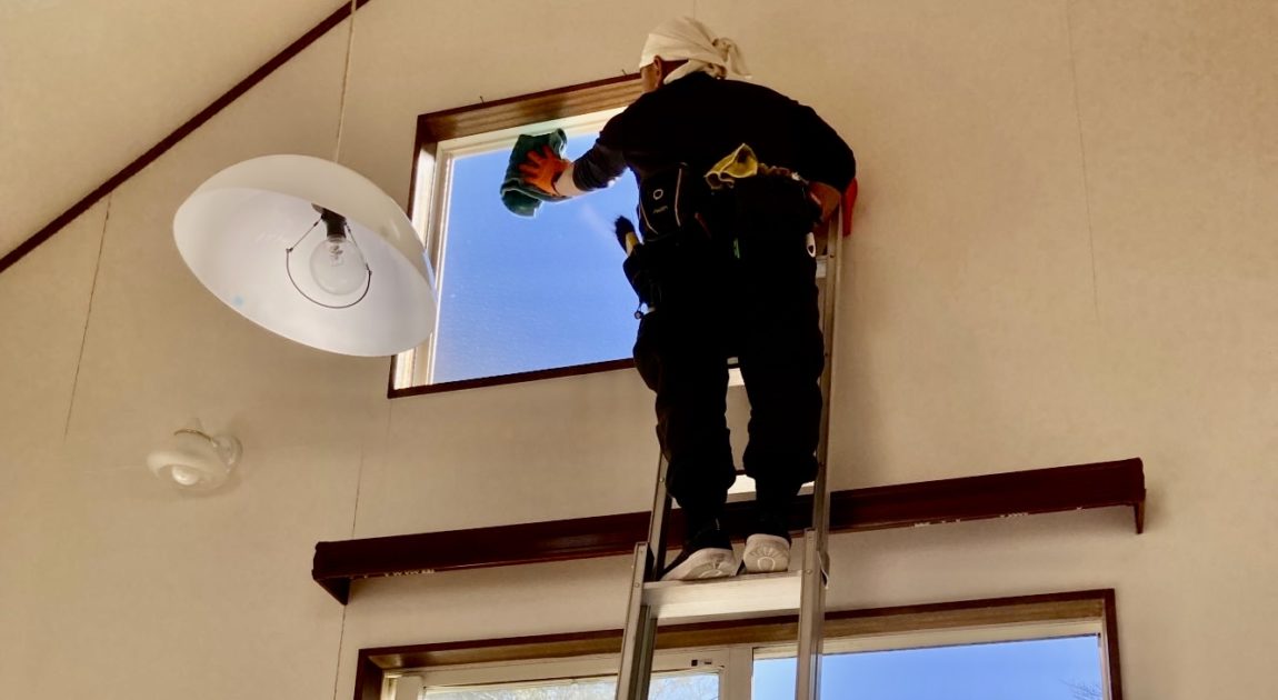 別荘や最近のオシャレなお宅に多い吹き抜けや梁。高い位置の窓や梁もしっかりキレイにさせていただきます💪