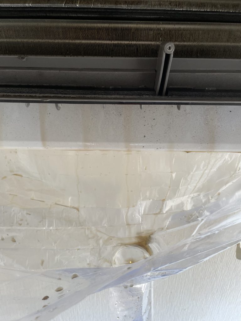 ↑コレはエアコンに専用洗剤を噴霧している時の様子😅 カビやホコリなどの汚れが溶け出てきています。