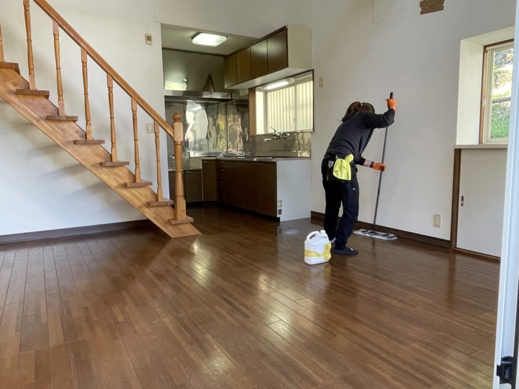 年数が経ちくすんでしまったフローリングもポリッシャーでしっかり洗ってワックスをかけると見違える程キレイになります🤩