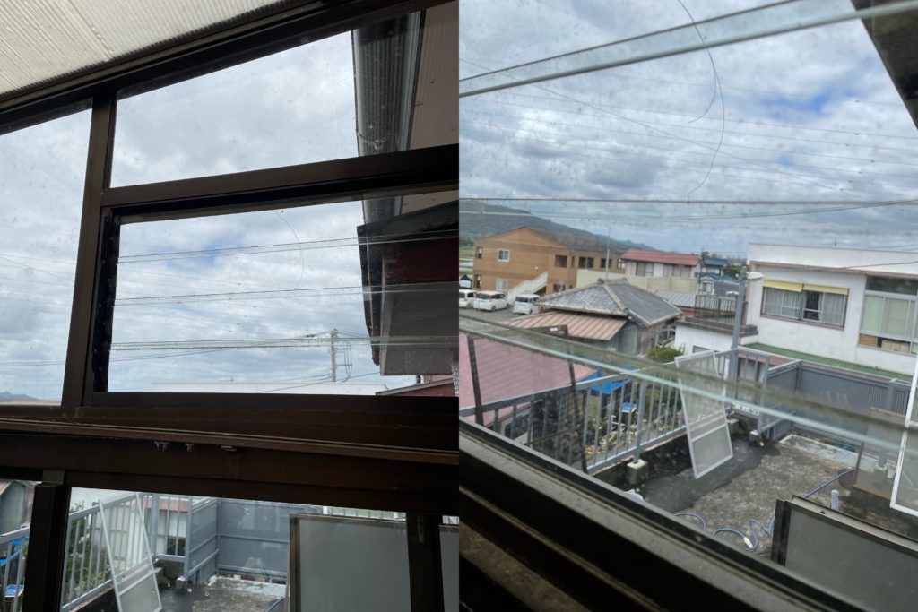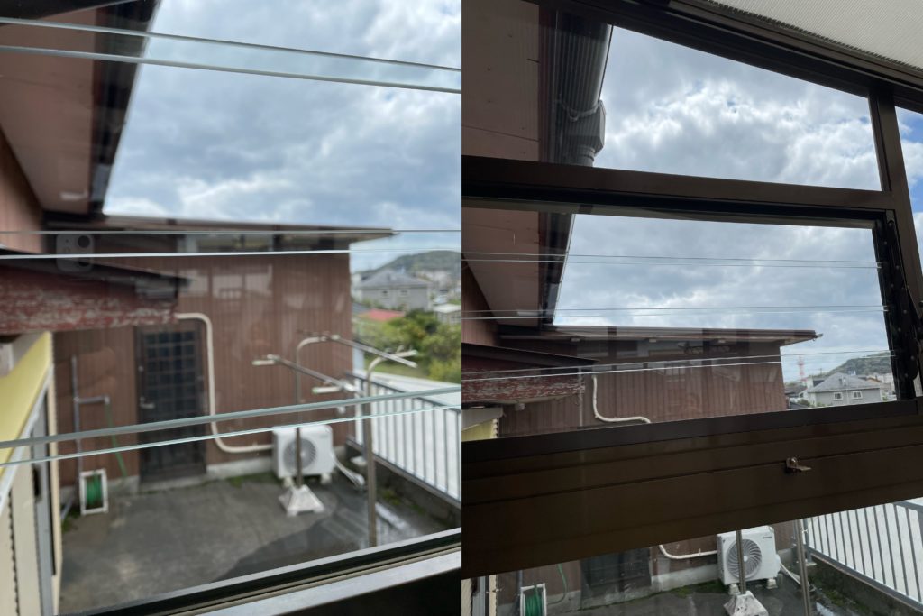 ガラス清掃時の写真を撮りましたが、わかりづらいかも😅