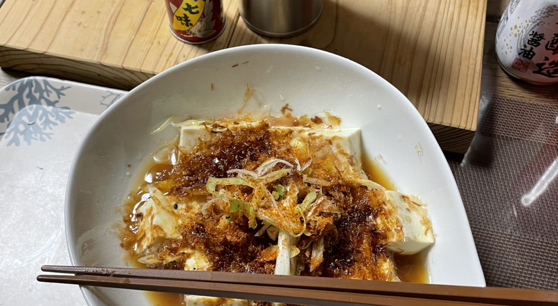 トップ画像は今日のおつまみ😁 我が家では豆腐のバクダンと呼ばれています。レンジで温めた豆腐にネギと鰹節をたっぷりかけて、味の素少々、醤油適量、その上から熱々のサラダ油をジュッと掛けたら出来上がり😊お好みで七味を振ってください。美味しいですよー👍