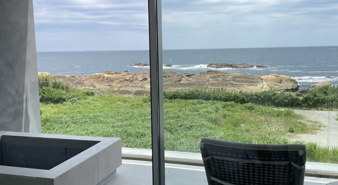 SPA棟への通路のガラスに小さなお子さんの手跡が☺️