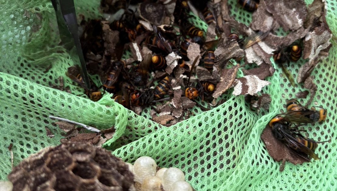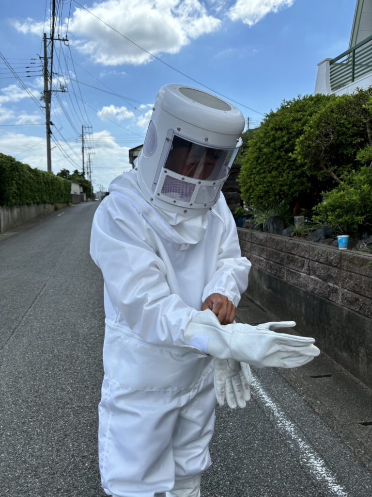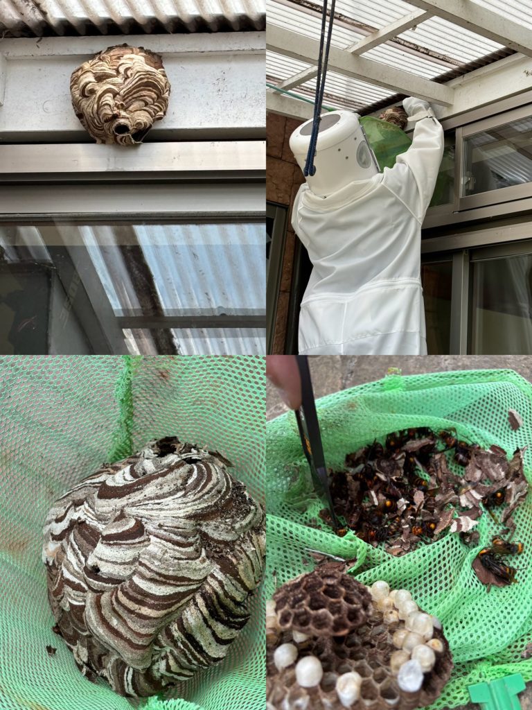 そうです、ワタシが変なオジ…ちがうちがう🫲ハチの巣撤去🐝 窓掃除をしていたらハチがいきなり3,4匹目の前に飛んできたんで窓の外を覗くと、すぐ上に蜂の巣が😳 そこで、いつもお世話になっているなんでも知ってるMJさんに連絡^_^ すぐに駆けつけてくれたんですが、なんでも経験だからとワタシが作業することに😭 MJさんのご指導のもと無事撤去することができました😅