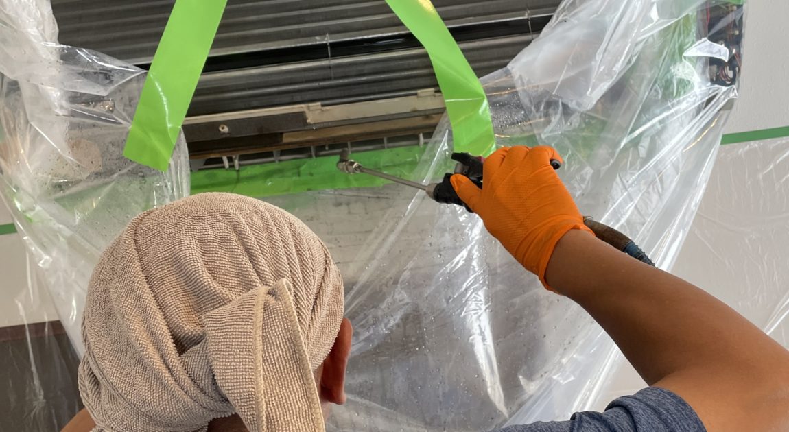業務用壁掛エアコンと家庭用壁掛エアコンの2台を洗浄😊
