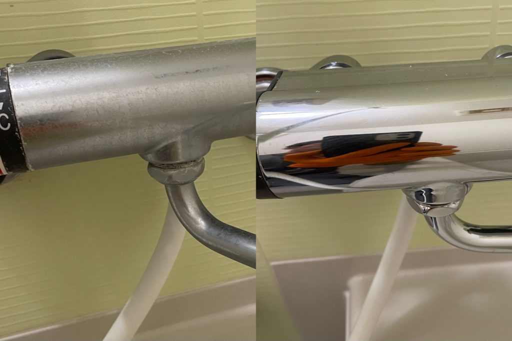 浴槽のふちやカランのしつこい水垢もキレイになりますよー^_^ 清掃後はお風呂場が少し明るくなった気がします😊