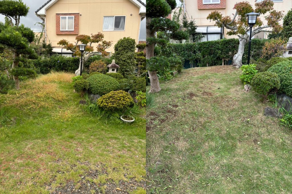 今日の現場はご高齢のお母さんお一人住まいのお宅☺️ ご自分でも少し草取りしてみたけど…と この広さをお一人で手刈りですすめるのは大変…というか自分でも何日かかることやら😅 しかも植木や垣根もありますし😅 ご無理なさらずライツをご活用くだされば幸いでございます🙇🏻