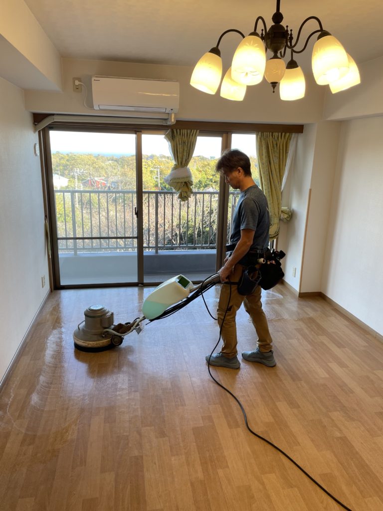 フローリングの洗浄してからワックスがけ✨