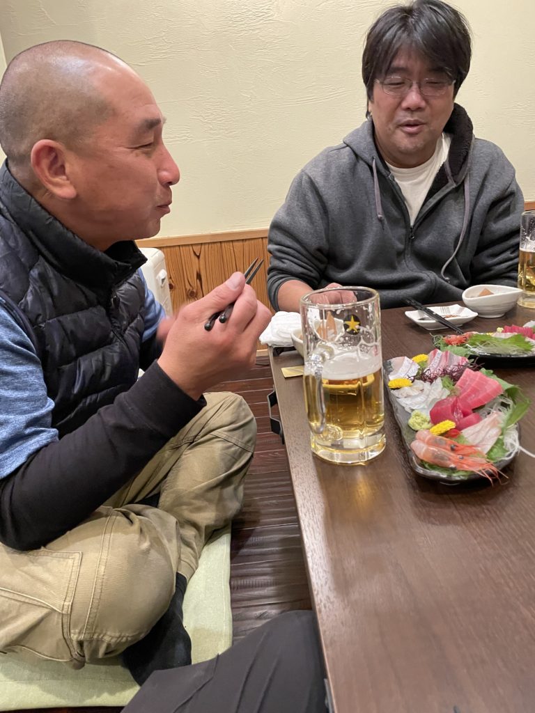 出張中の男性陣は、夜は会議と称した宴会😁 Yさんにご馳走になっちゃいました😋 でも、こういう場も色んな仕事の話しが聞けて勉強になります☺️ 今回もためになる話が聞けました、親方はいい仲間に囲まれて幸せ者だ😁