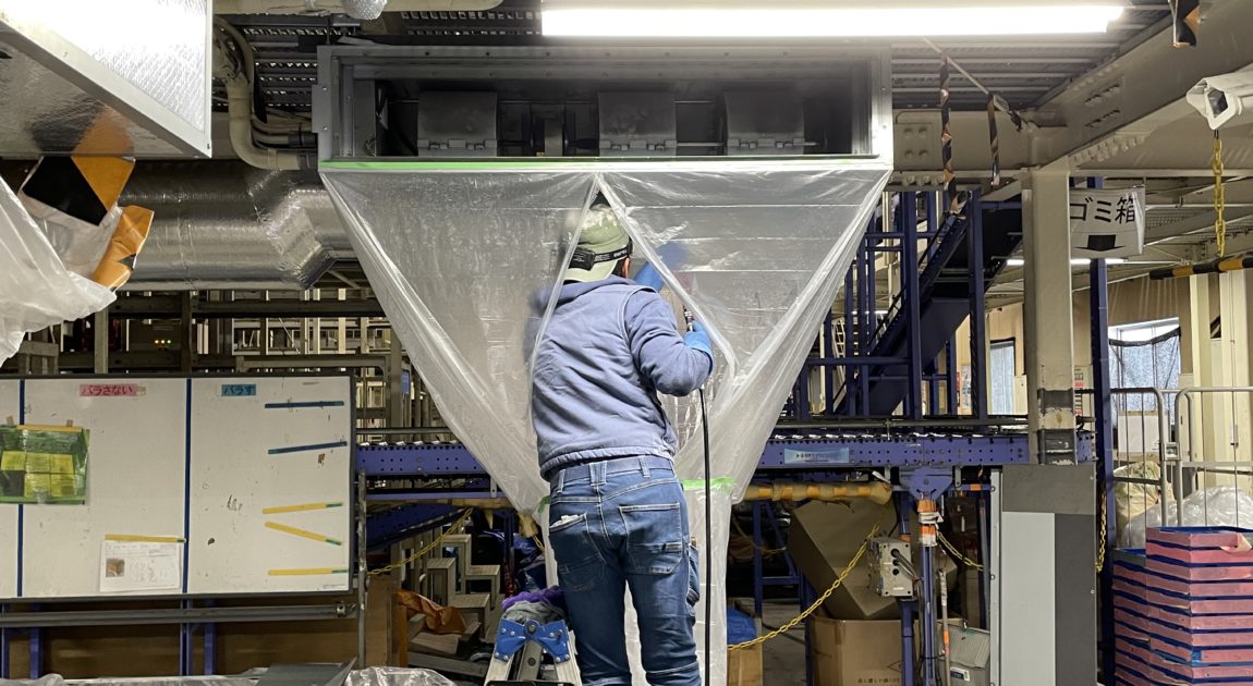 昨日に引き続き、女性チームは房総でお仕事、親方と自分は埼玉県桶川市で業務用エアコンのクリーニング^_^