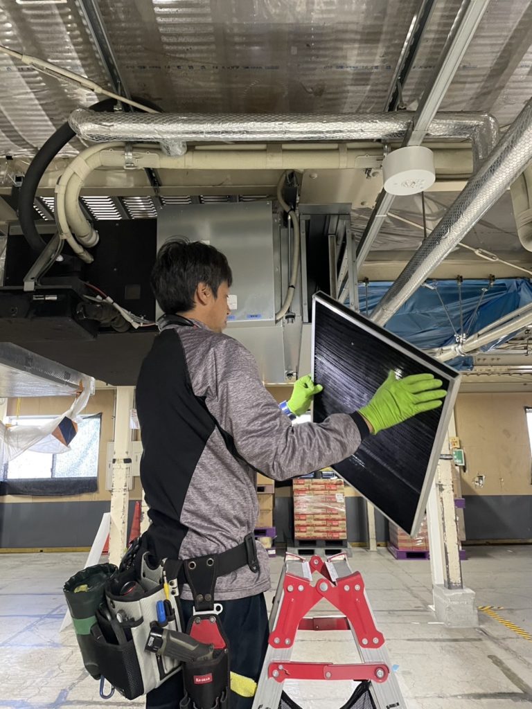 我々男性陣は業務用エアコンのクリーニング、家庭用とは全く違う作り(^^) 今回は仕事仲間のYさんから応援依頼をいただき作業させていただきました☺️ 色々なエアコンをクリーニングできて勉強になります😊
