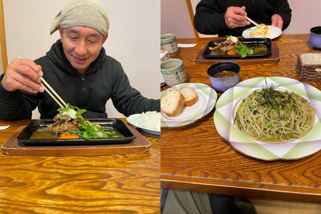 親方はハンバーグステーキ定食(和風ソース)、自分は磯風味のパスタをいただきました😁