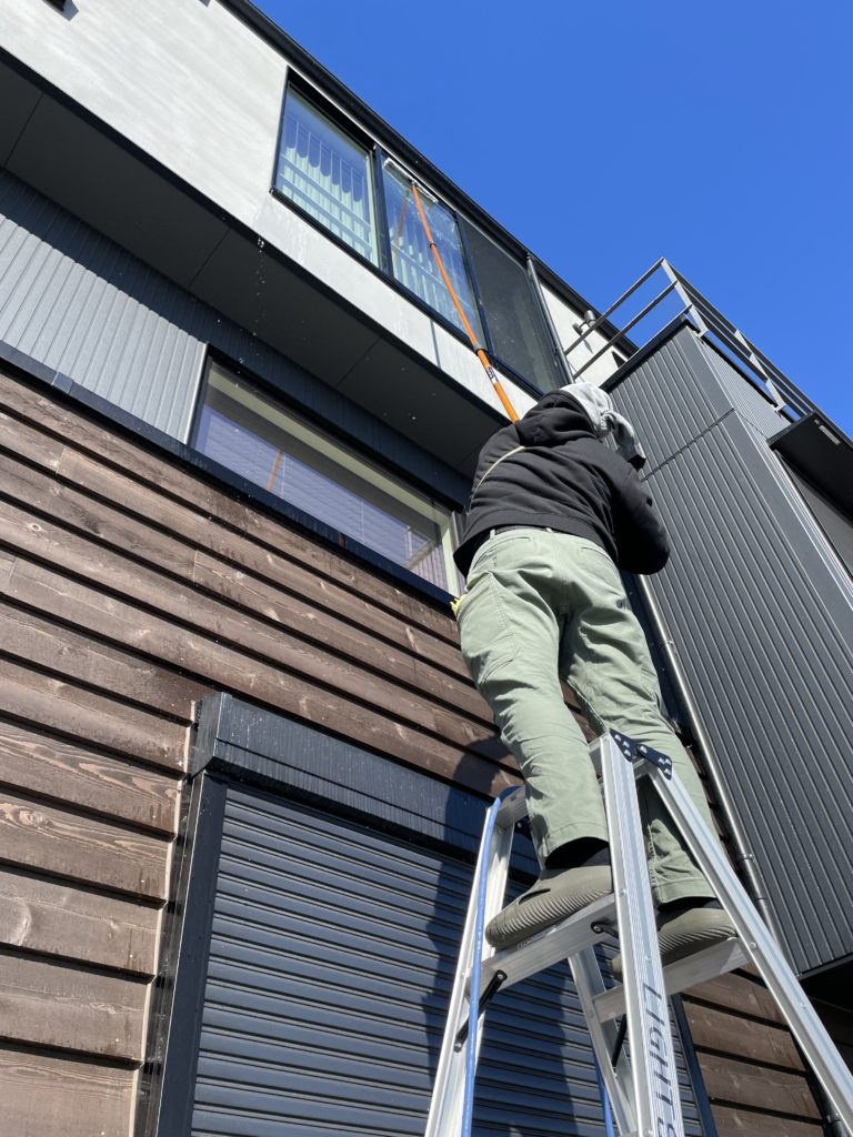 かっぱぎにくい窓も色んな道具を使ってあの手この手でお手入れ🪜 親方に特訓してもらいました😁