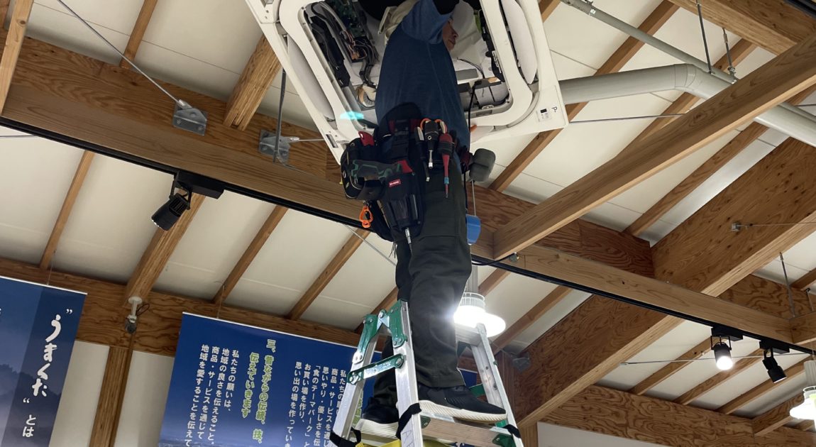 高所作業で、足元は商品や陳列棚が沢山置かれているんで作業は慎重に慎重に😅