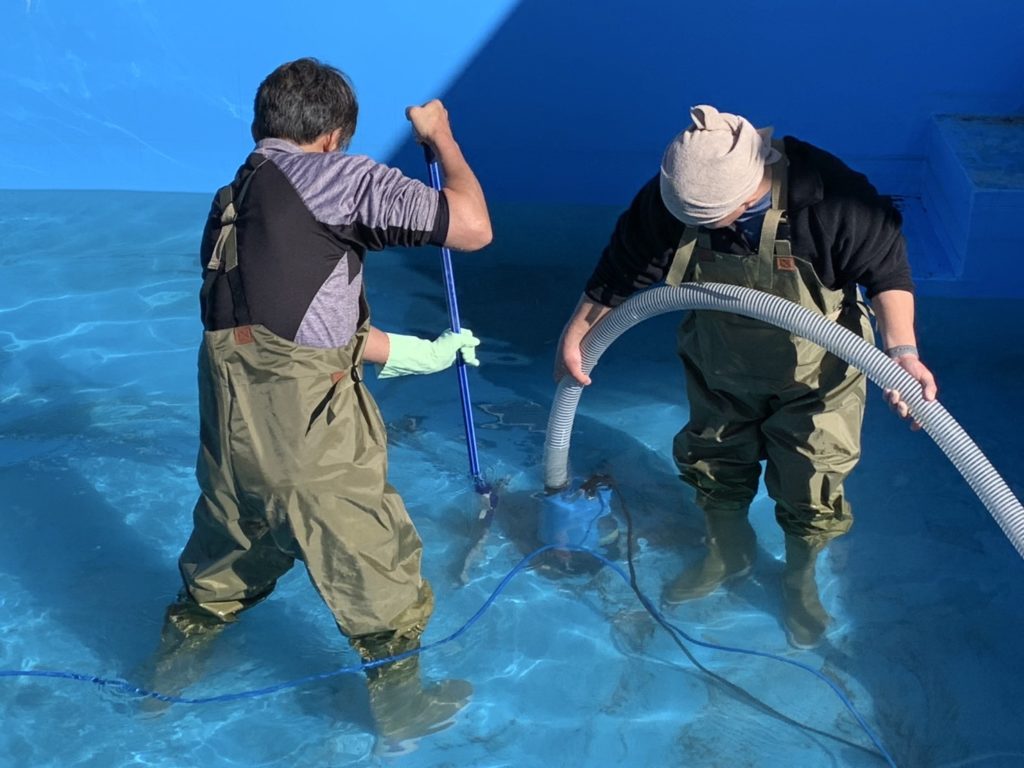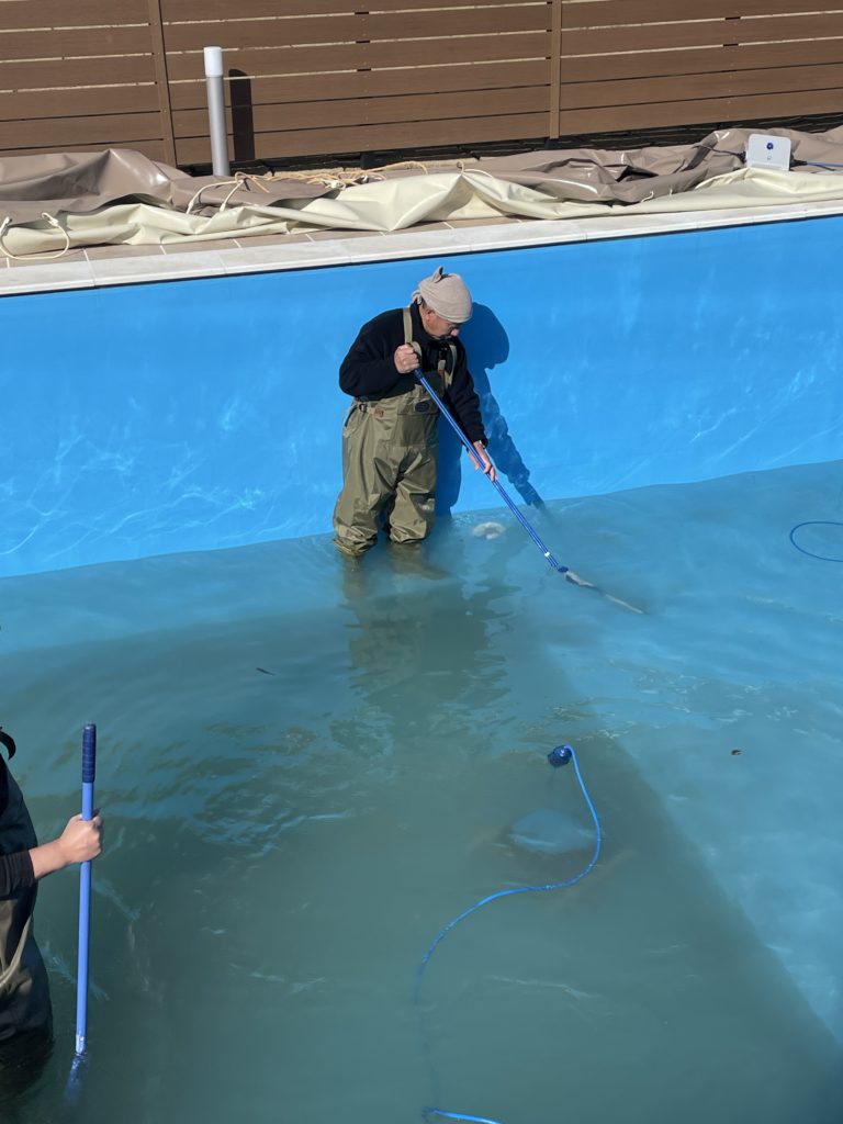プール清掃、やっぱりこの時期は寒いですねー🥶