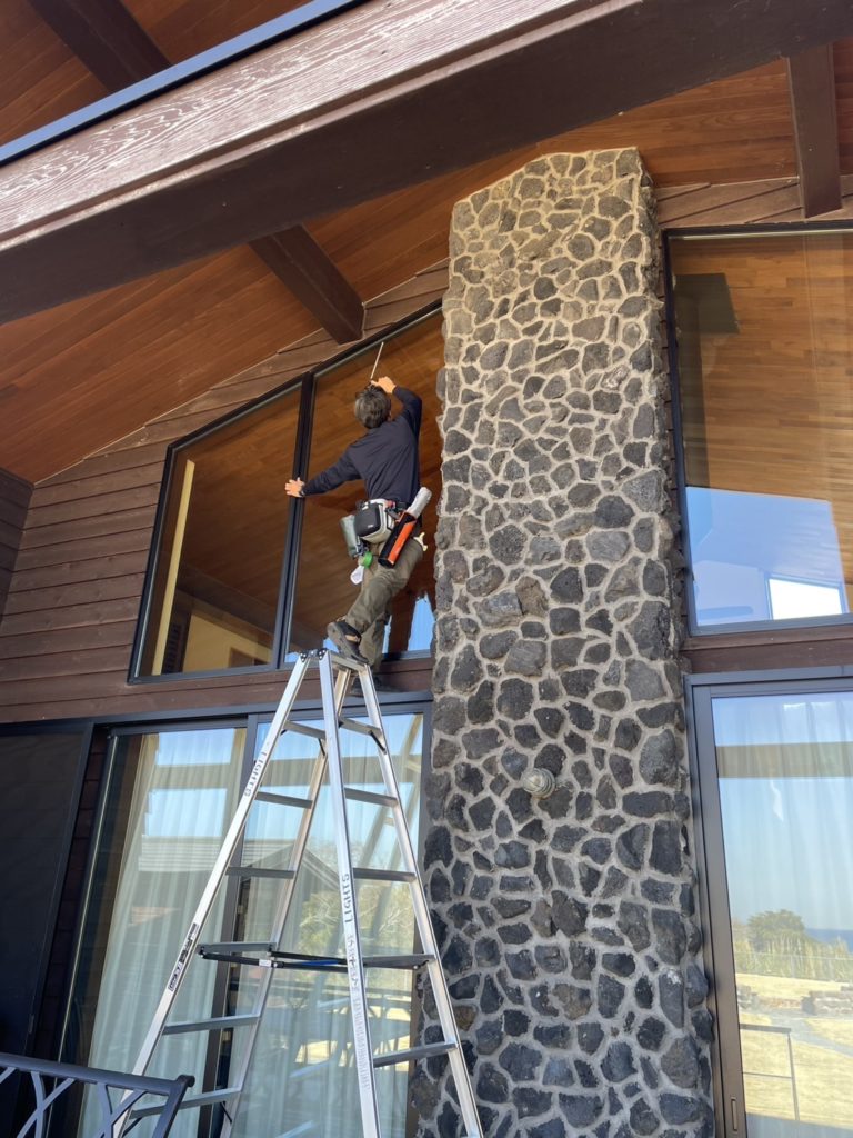 今日の別荘管理は窓のクリーニングと外周りを中心に作業(^^) 鳥フンなんかもしっかり洗い流します🚿