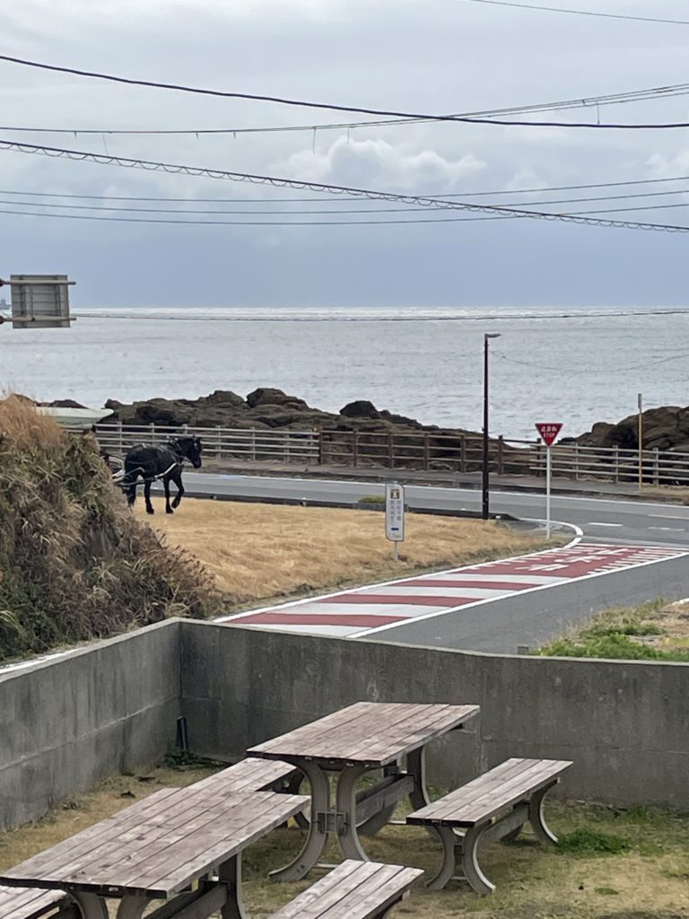 そう、白浜では観光の皆様向けに馬車があるんですよねー😁 シャッターチャンスを逃して、小さかったり後姿だったりの写真になっちまいましたが😅 白浜にお出掛けの際は是非ご体験ください! 自分は乗ったことありませんが😅