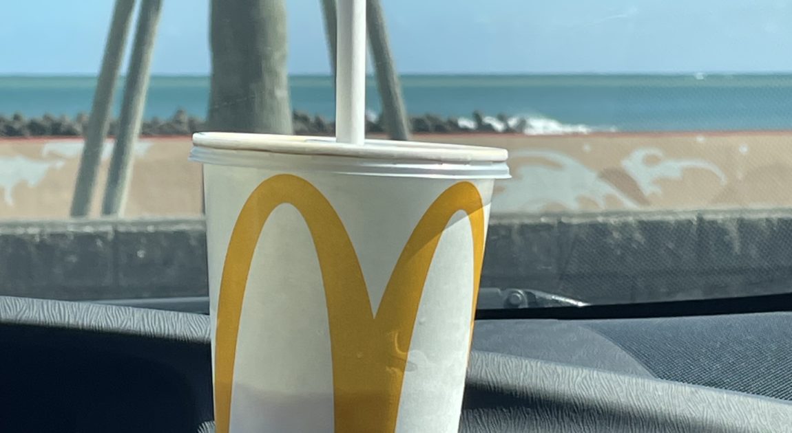 今日のスタミナ飯はマクドナルド🍔🍟🥤 天気も良くって、海を見ながらのお昼はサイコーでした👍