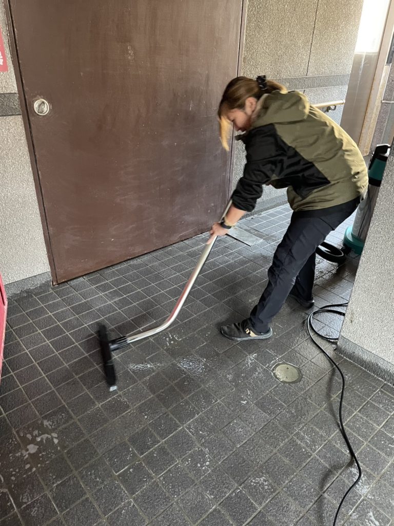 玄関マットといっても、マンション各階のエレベーターの出入口に敷かれている物で8枚。これを高圧洗浄してウェットバキュームをかけていきます。汚れもかなり洗い流せてここまでは順調👌 これで乾けば完了といきたかったのですが、よく見ると👀髪の毛が… この髪の毛取りの作業がなかなか時間がかかった😅 でも、かなりキレイに仕上がって、お客様にも喜んでいただけました❗️ マットクリーニングは慣れない作業でしたがうまくいってなによりなにより☺️