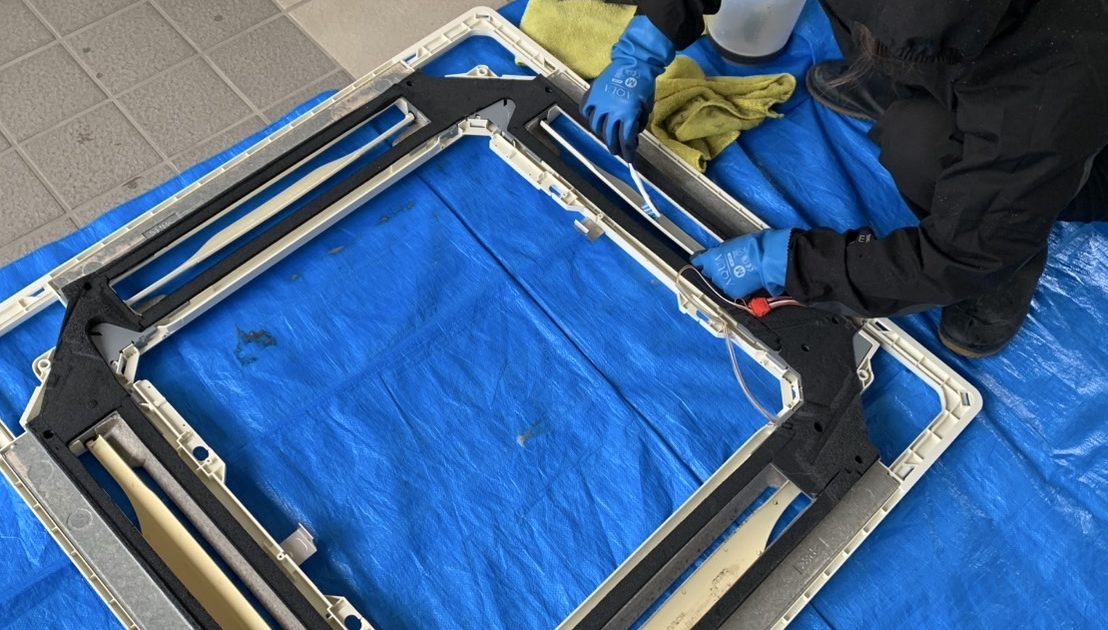 パーツ洗いは冷たい雨の中女性スタッフとMJさんが頑張ってくれました! そのおかげで作業はスムーズに進み無事完了👍