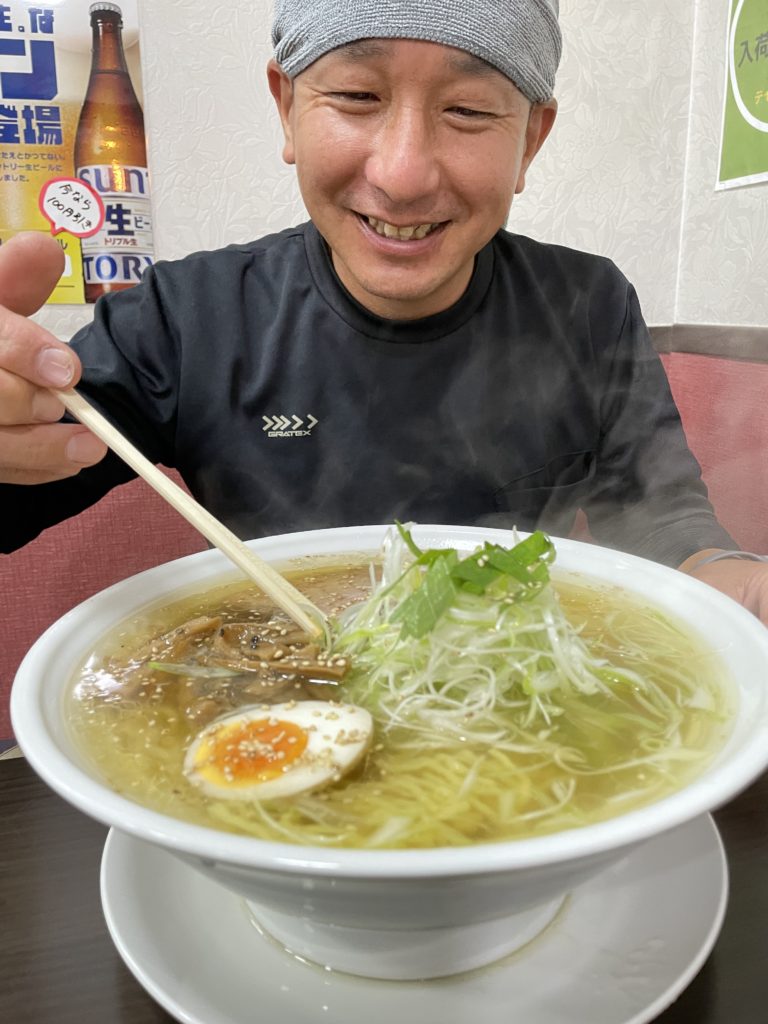 金華飯店さんで🍜 親方は塩ラーメン大盛りでこの表情😁 若いねー