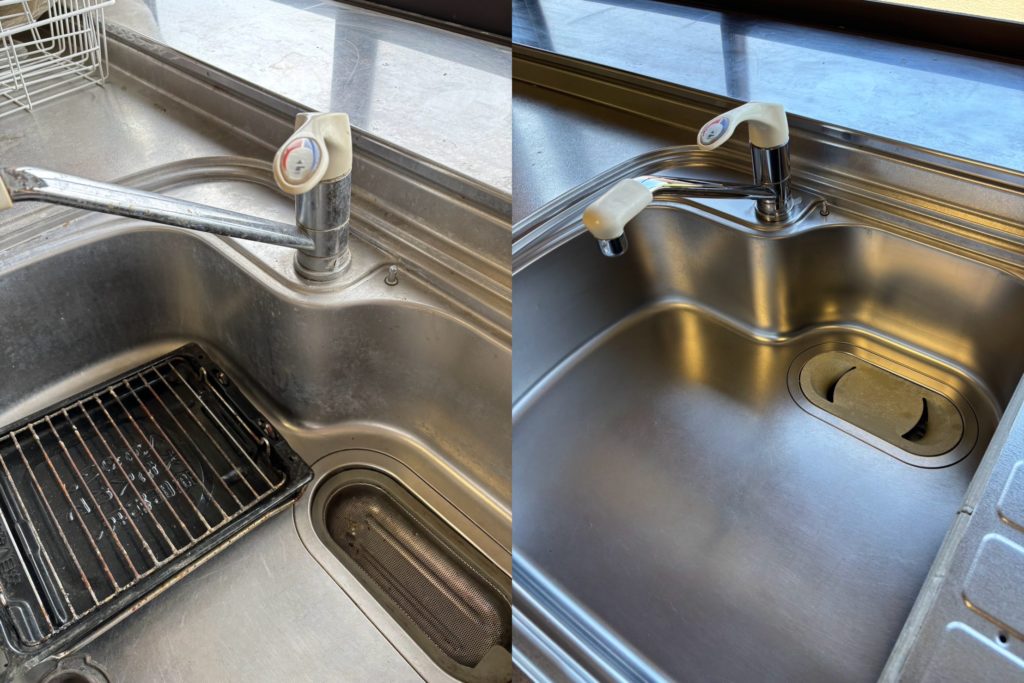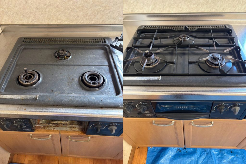 キッチン周り、結構大きく収納も沢山ありましたが女性スタッフ頑張りました💪 シンクもコンロもご覧の通りピカピカに🤩