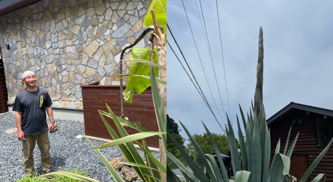 トップ画は別荘に植えてある植物達。左はバナナの木🍌 右のアロエのおばけみたいなのはアオノリュウゼツラン、なんかいつの間にか真ん中から竹みたいなものが伸びている🙄 調べたら数十年に一度の開花の兆候らしい🫢 どんな花が咲くのか楽しみ〜😊