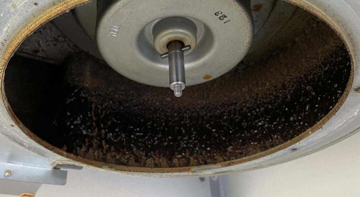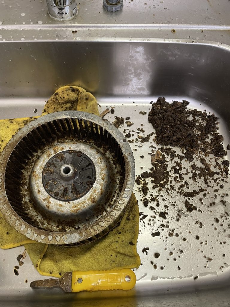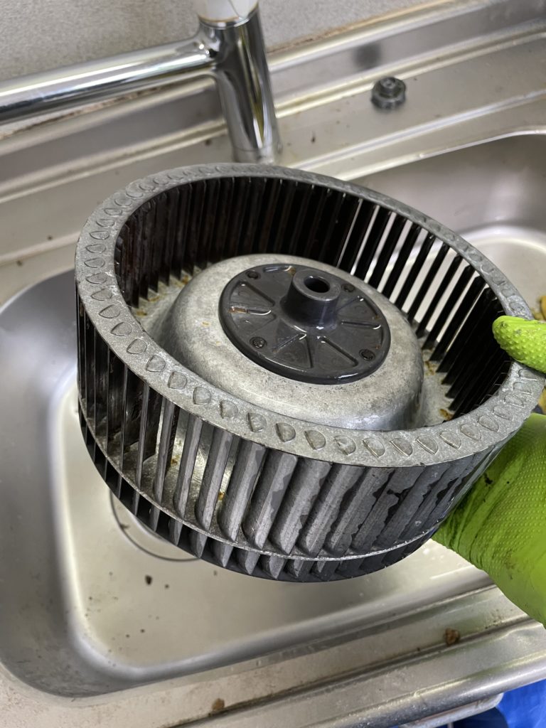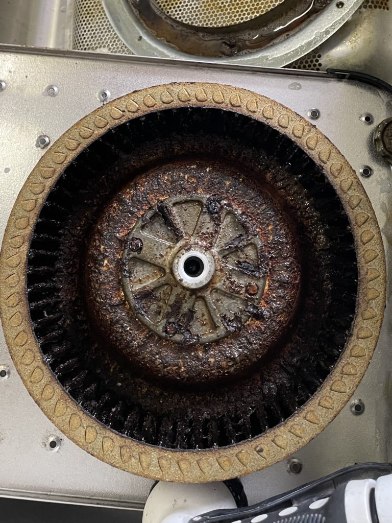 レンジフードのシロッコファン。油汚れで羽の隙間がなくなってしまってます😱 コレジャアカンキデキナイ‼︎