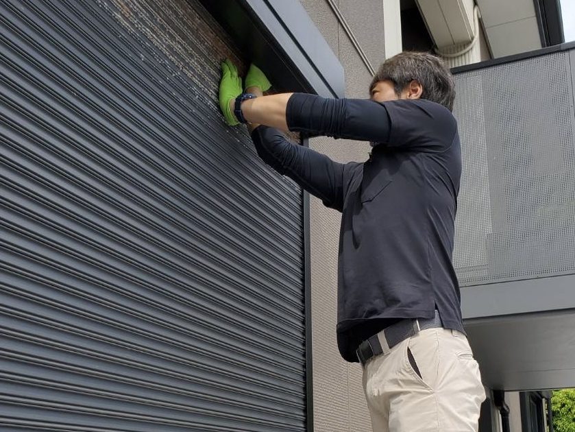 決して怪しい者ではございません😁 シャッターにできまてしまった鳥の巣を撤去💦