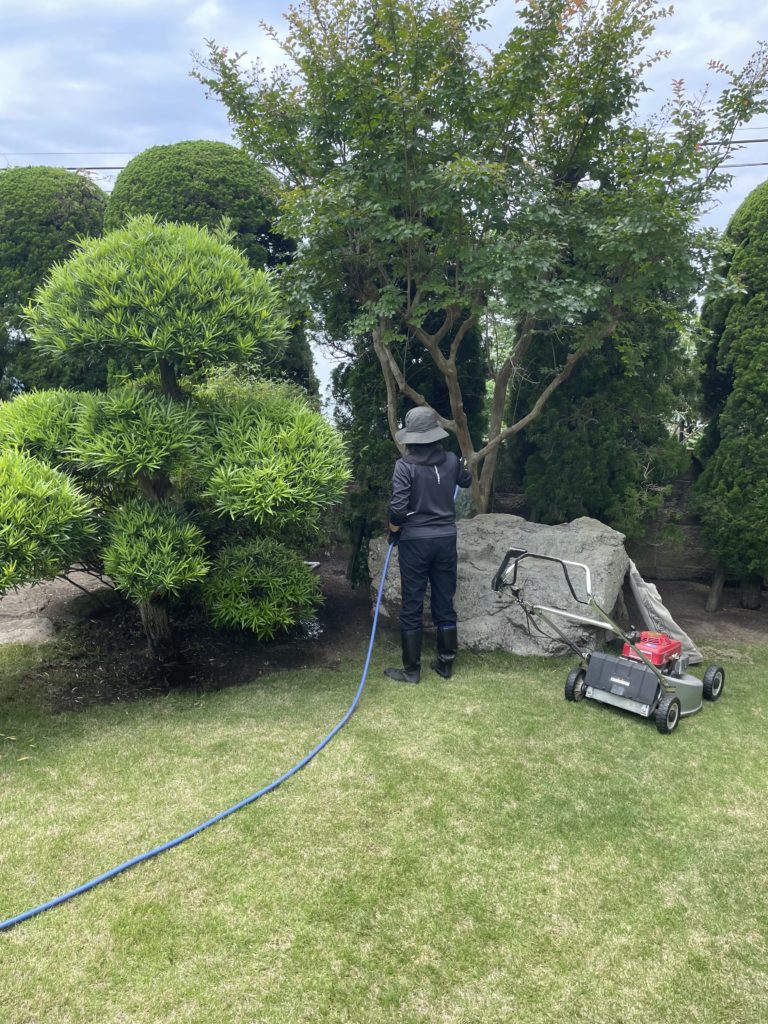 建物の換気や除湿、庭の草刈り、芝のお手入れ、植木の水やり、シャッターや玄関周りの塩流し等。定期的に作業させていただいているので、いつも綺麗で気持ちいい👍
