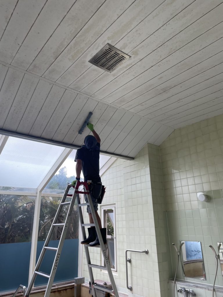 今日はYイチ君にも参戦してもらって、皆んな揃ってマンションの大浴場の天井をクリーニングさせていただきました^_^