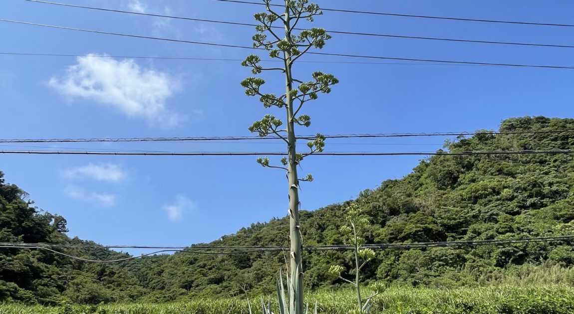 別荘のアオノリュウゼツランも徐々に咲いてきました(^^)