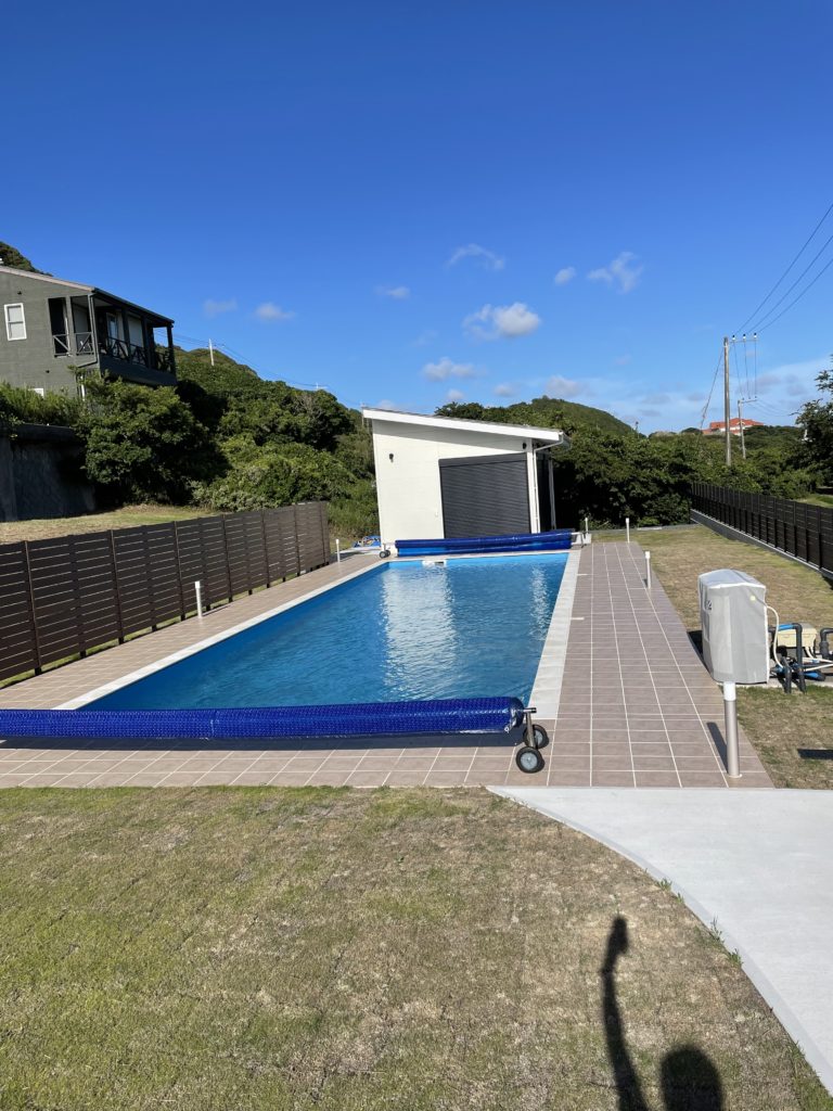 昨日外したカバーシートを洗って畳んで、各備品もセットして準備完了! これでいつでもプールをお楽しみいただけます👍 思えば、カバーシートが納品される前に大西風でプールに大量の砂が入ってしまい、真冬にプール入って一生懸命ポンプで砂をかき出すこと数回、それでもなかなか細かい粒子の砂や濁りはとれず、試行錯誤しながらお手入れを続けてやっと綺麗になりました😊 施主様がご利用されるタイミングに間に合って良かった〜😅