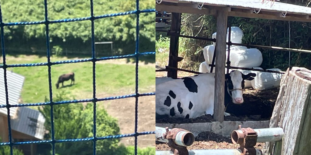 海も緑も牛さんも🐮 下に見える建物は牛舎で牛達が暑そぉーに過ごしてました😁