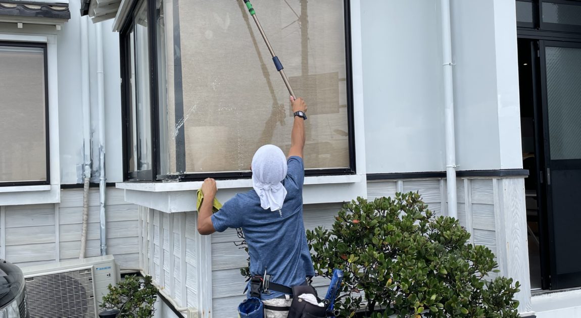 宿泊施設は予約でいっぱい、おかげさまで我々の清掃も大忙し^_^ 今日もMJさんに応援に来てもらって、窓もかっぱいでもらって😁(トップ画) 窓が汚いと、せっかくのオーシャンフロントも台無しですからねー