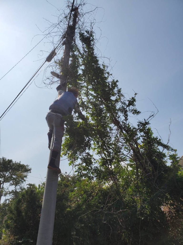 ツルが電柱に絡んでしまっていて四苦八苦💦