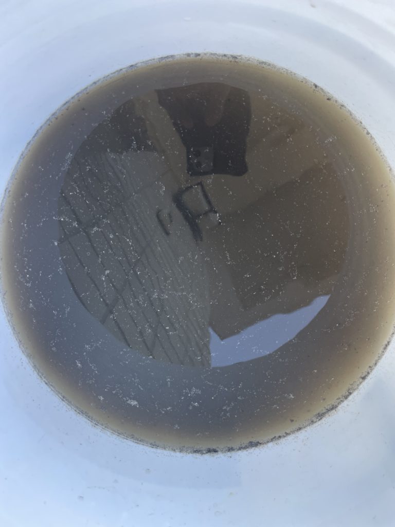 エアコンを洗い流した後の汚水も真っ黒💦