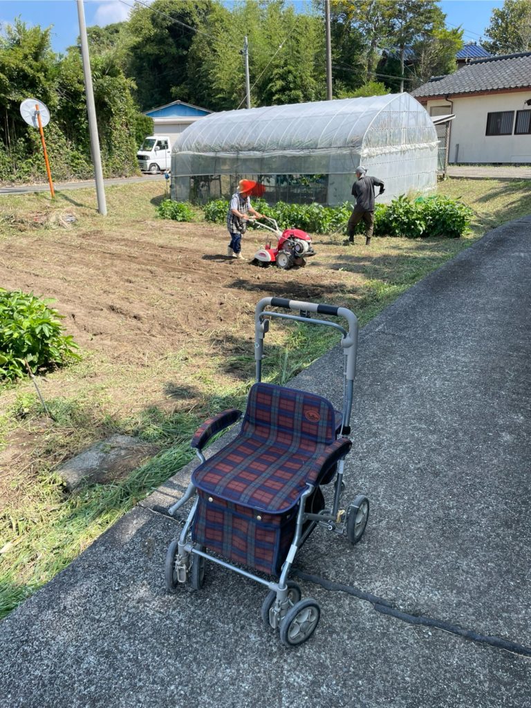 おばあちゃん、シルバーカーを置いて、耕運機を押し始めました😁 コレがあるべき姿❗️おばあちゃんまだまだイケます!さすが長年やってきただけあってサマになってます👏 熱中症には気をつけてネ!