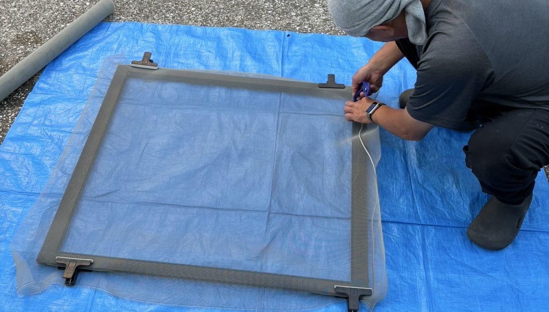 あっ、トップ画はね、今日の作業が終わったあとに親方が残業で網戸張りしてるとこ😁 お疲れ様でございます🫡