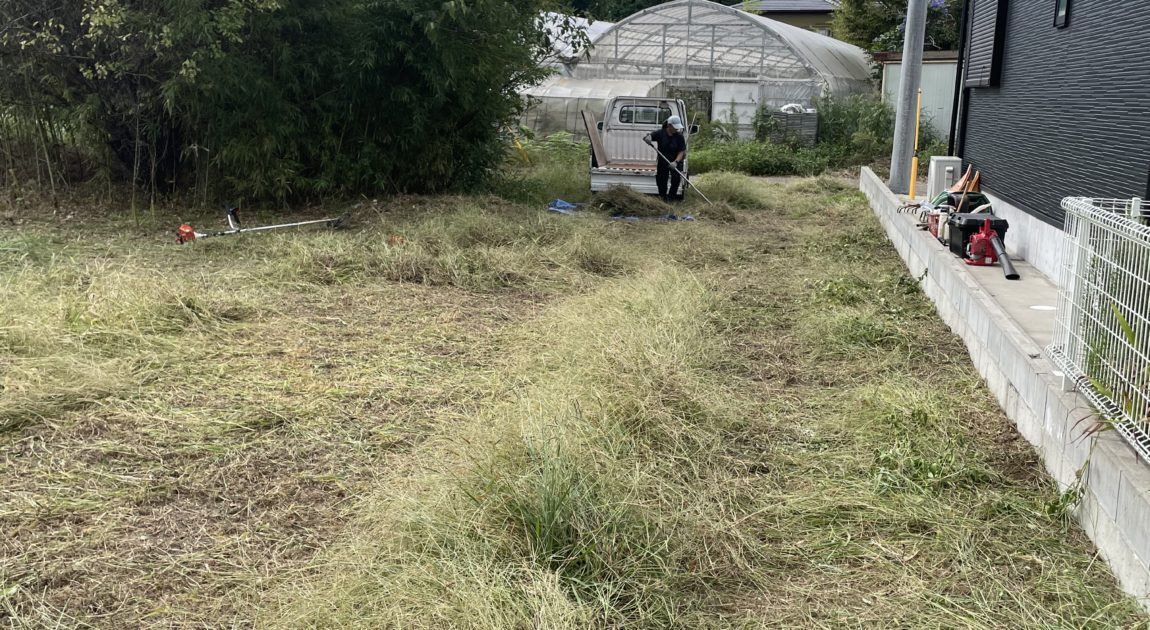 今日は2チームに分かれて作業。親方達は別荘管理業務、ワタシ達は2件の草刈りをさせていただきました^_^