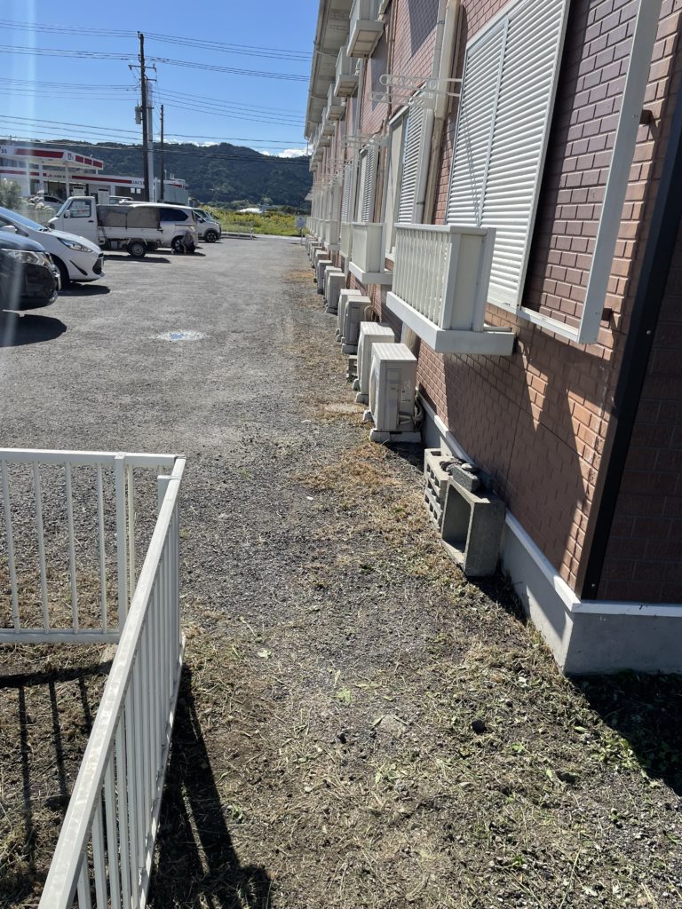 アパートの周りの駐車場などの共用部分をしっかり刈らせていただきました🫡
