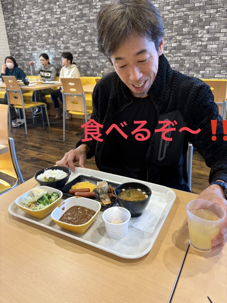 朝風呂入って、朝メシもガッツリ食べて準備万端😁自分は普段、朝は食べないんですが、たまに食べるとうまい!