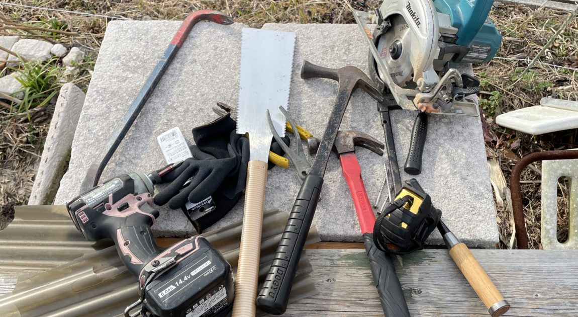 先日の雹❄️で穴だらけになってしまった波板を修理。MJさんの現場のお手伝いです(^^)