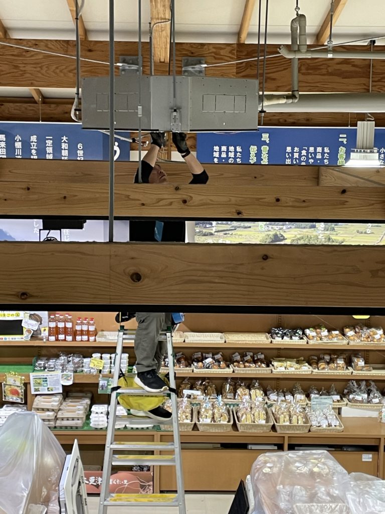 Yさんの現場の応援で夜間作業でした。Yさんはエアコンの取付け工事も行うプロフェッショナル😁一緒に作業させていただくと勉強になります。