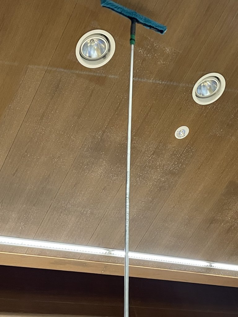 Mちゃん、3段ポール使って天井のカビ落とし頑張ってます(^^)
